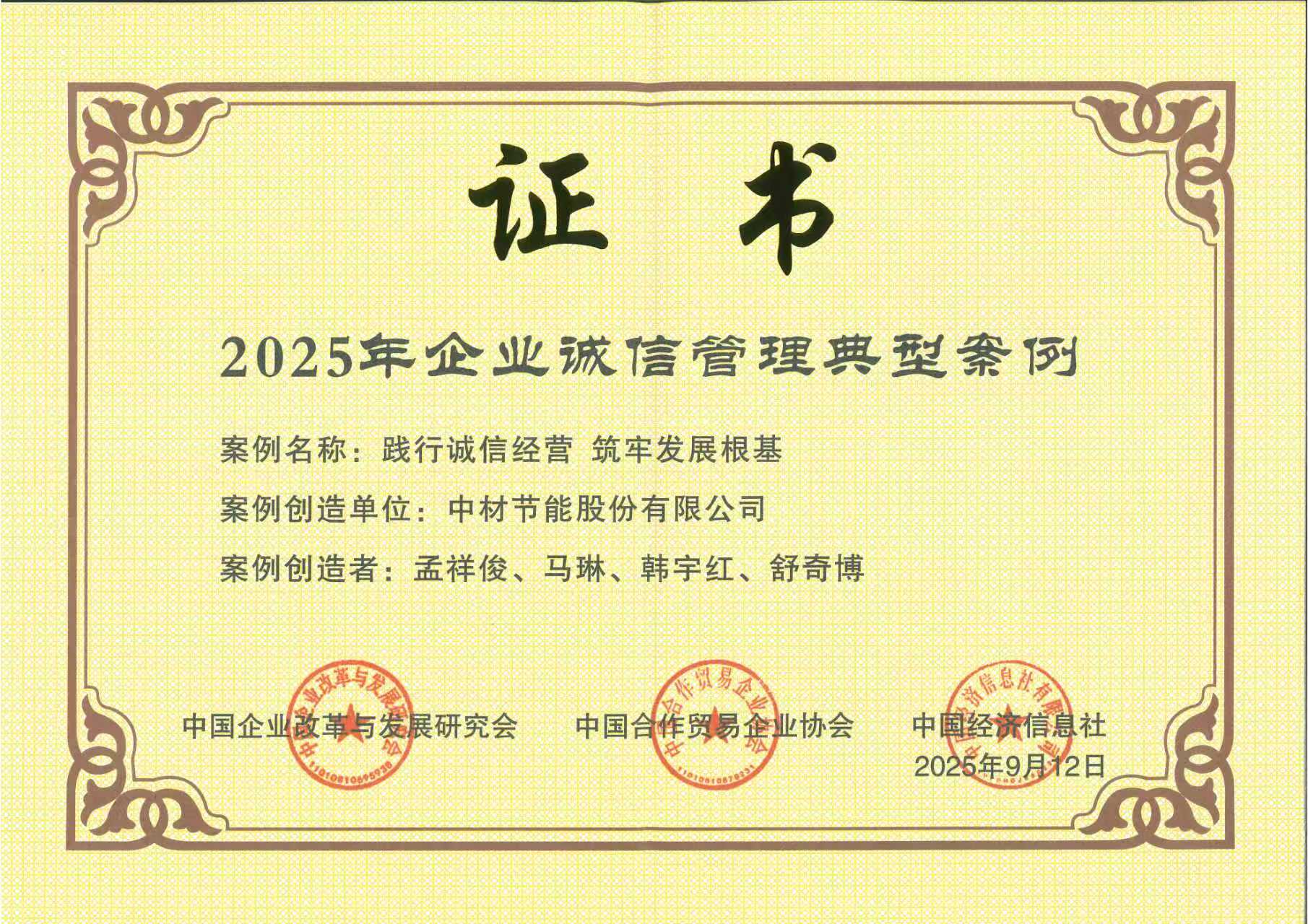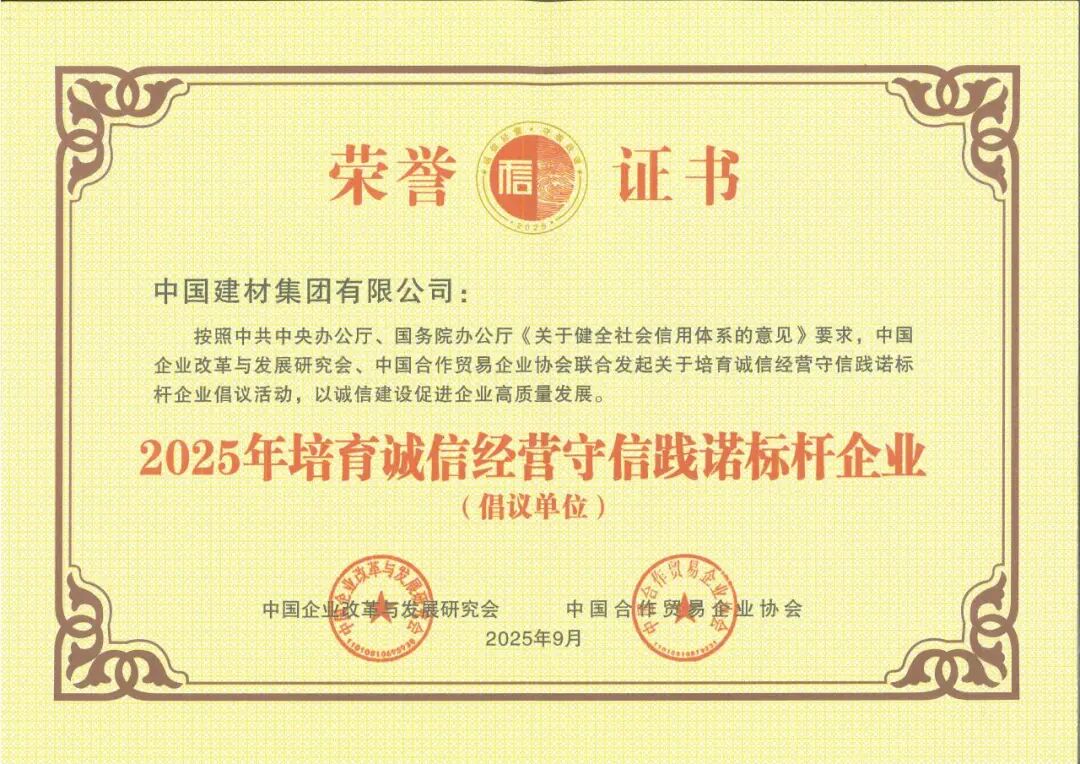 中國建材集團(tuán)入選2025年培育誠信經(jīng)營守信踐諾標(biāo)桿企業(yè)倡議單位